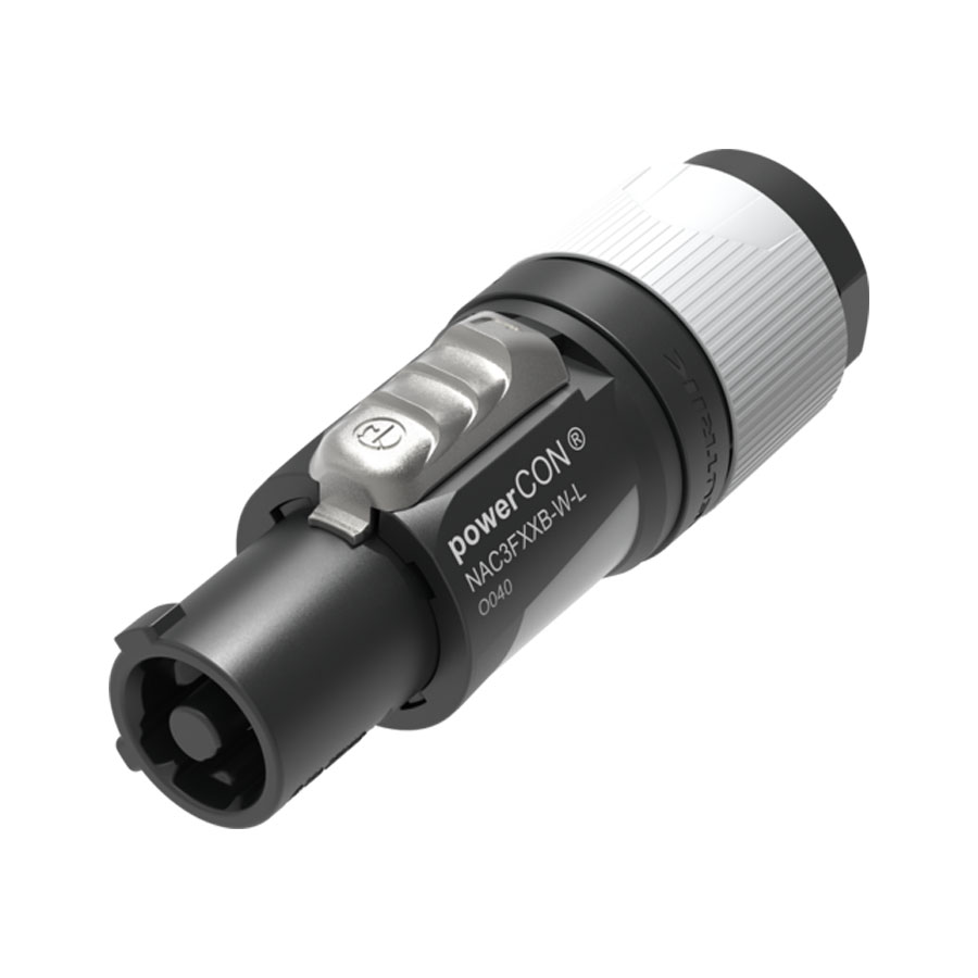 The powerCON FXXA/FXXB is a single phase (3 conductor) lockable power connector with Circuit Breaking Capability when mated with powerCON XX Series receptacles.