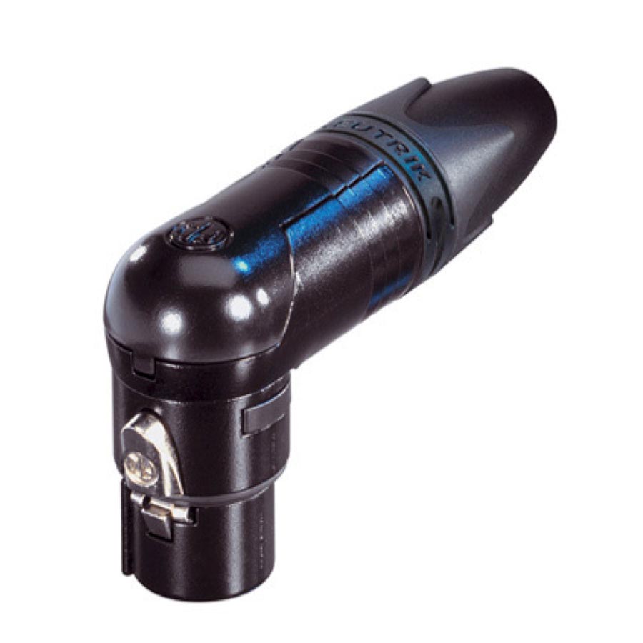 3 pole right angle female cable connector, black metal housing, silver contacts