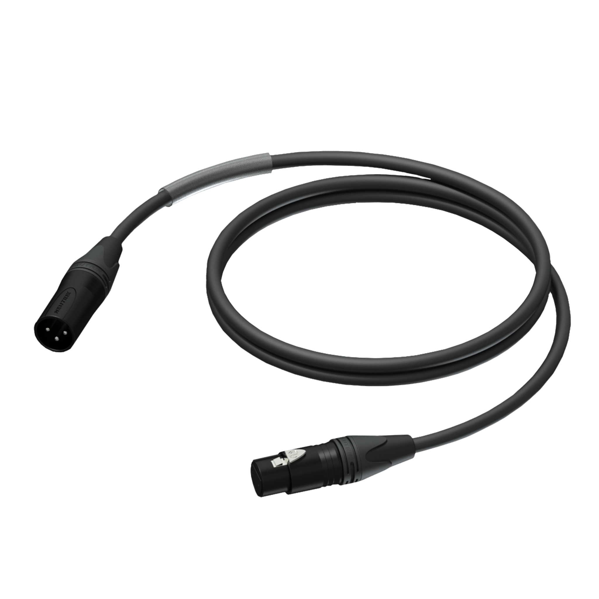 The PRD953 is a 110 Ohm DMX-AES/ EBU cable constructed using the PMX222 cable and fitted with Neutrik 3-pin XLR connectors. The 22 AWG (0.34 mm²) tinned copper braiding with a double (Al-foil + TC braiding) shielding makes it perfectly suited for professional use in highly demanding applications. The stranded conductors and smooth flexing outer jacket provide a great flexibility with a solid feel. The dark grey outer jacket and the attached shrink sleeve allow to distinguish 110 Ohm cables from others while custom labeling is possible for easy identification. It comes in different lengths from 0.5 meters to 20 meters, providing solutions for all applications.