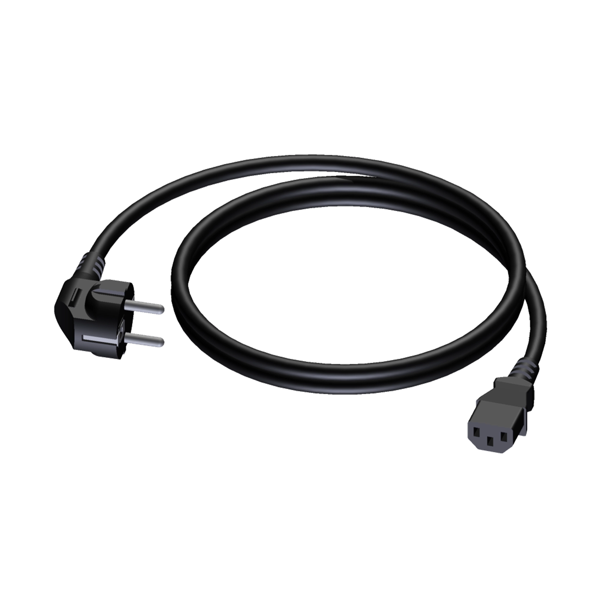The CAB490 is cable that is made for connecting mains power to a Euro power socket. The cable is provided with a Schuko power male to a Euro power female connector. The power cable contains 3 conductors with a section of 1.5 mm²